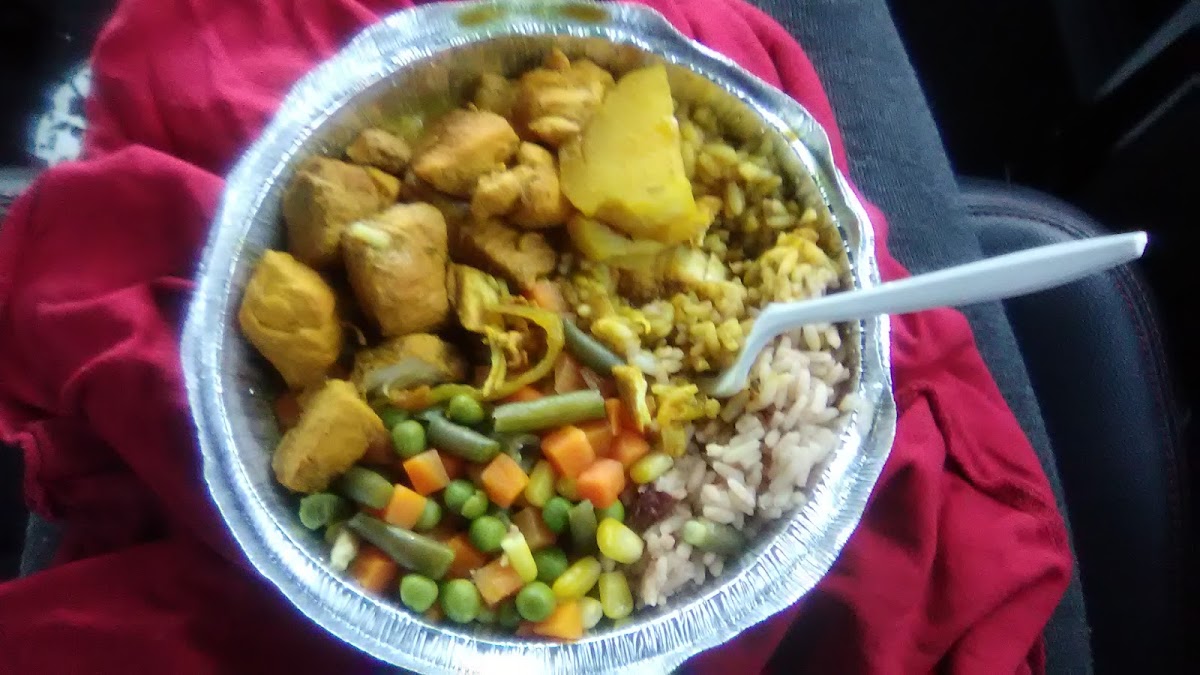 First time ordering, and it was not disappointing. The Curry Goat was great. It was cooked to perfection, and the flavor was on point. The Curry Chicken tasted great, just the right amount of curry, only white meat no bones. Both dishes were well seasoned, tasted great, the potion was sufficient and came with one side each.